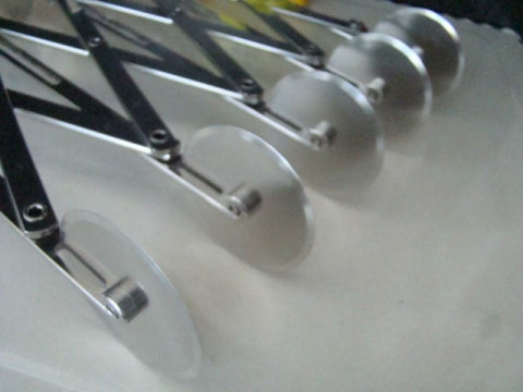 Znacznik dwustronny - z jednej strony noże okrągłe gładki z drugiej falowane. Do cięcia i znakowania ciasta na regulowaną odległość. Pięć noży powoduje iż urządzenie jest wydajne