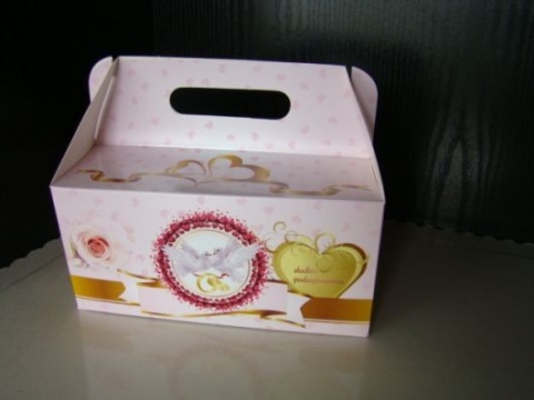 Bardzo praktyczny i estetyczny kartonik dla gości weselnych w którym na pożegnanie w formie podziękowania ofiarowuje się drobny upominek - przeważnie jest to kawałek weselnego ciasta.