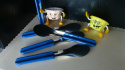 Łopatka do lodów, z niebieską rączką. do wybierania zmrożonej masy lodowej z frezera poziomego , układania jej w kuwetach i dekorowania