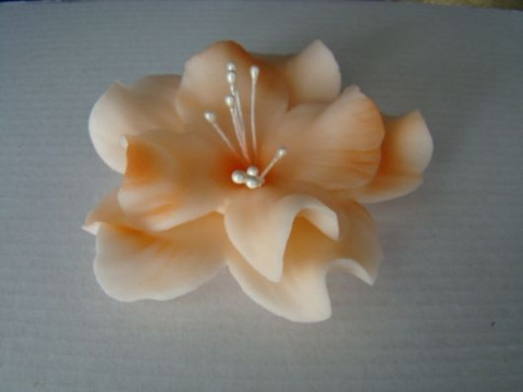 Kwiat Magnolii łososiowy - doskonale nadaje się do dekoracji tortów weselnych ,wielopiętrowych. kwiat dość duży o średnicy 8 cm zawiera elementy niejadalne ( pręciki kwiatu)