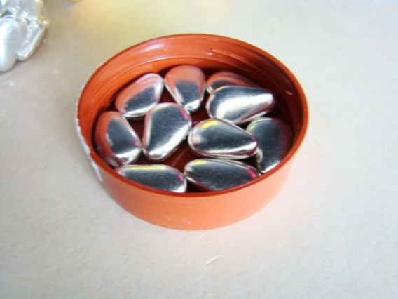Perełki cukrowe złote migdałki srebrne- długość 22mm do dekoracji ciast tortów , bankietówek, także stosowane w kompozycjach dekoracyjnych stołów .