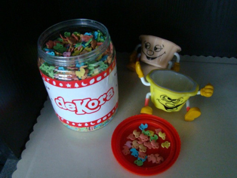 Konfetti mix kolorów - wózeczki - wielkość ok 1 cm do dekoracji ciast,tortów,deserów lodowych i innych kompozycji cukierniczych szczególnie z okazji urodzin.