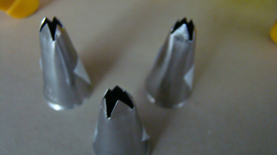 Doskonale wychodzą małe niesymetryczne gwiazdki w stosowaniu pionowym ,lub w przypadku ruchu poziomego wałeczek o niesymetrycznym przekroju. Polecam wykorzystanie ich z zastosowaniem worków do szprycowania - plastikowych 12 " Pamiętajmy że w worku docinamy jego końcówkę na 1/3 długości zdobnika.